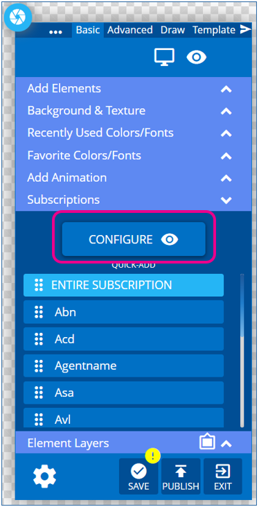 - In the Builder Control Panel, Click theĀ  Configure button in the Subscription section to open the Data Subscription Options
