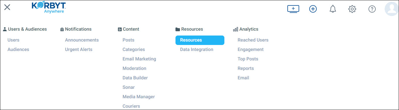 From the Add Resource screen, you can make resources available to a variety of audiences. When made available, the resource will appear on the Home page within the Korbyt Anywhere mobile app and web interface.