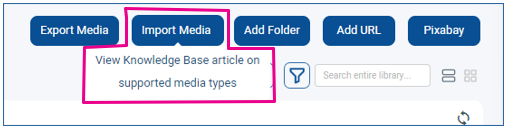 From within your CMS you can quickly open the article by hovering your mouse over the Import Media button and then clicking on the text “View Knowledge Base artilce on supported media types”